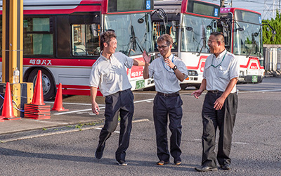 バスドライバーというと「ひたすら一人で運転する仕事」という印象を持たれがちですが、同社の職場は異なります。営業所では毎日、運行の相談や道路情報、さらには趣味や家族の話まで、年代を問わず気軽に会話ができる温かい雰囲気があります。
