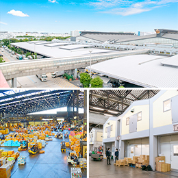「フォークリフト」や「ターレー」と呼ばれる小型の作業車を使います。操作方法もシンプル!