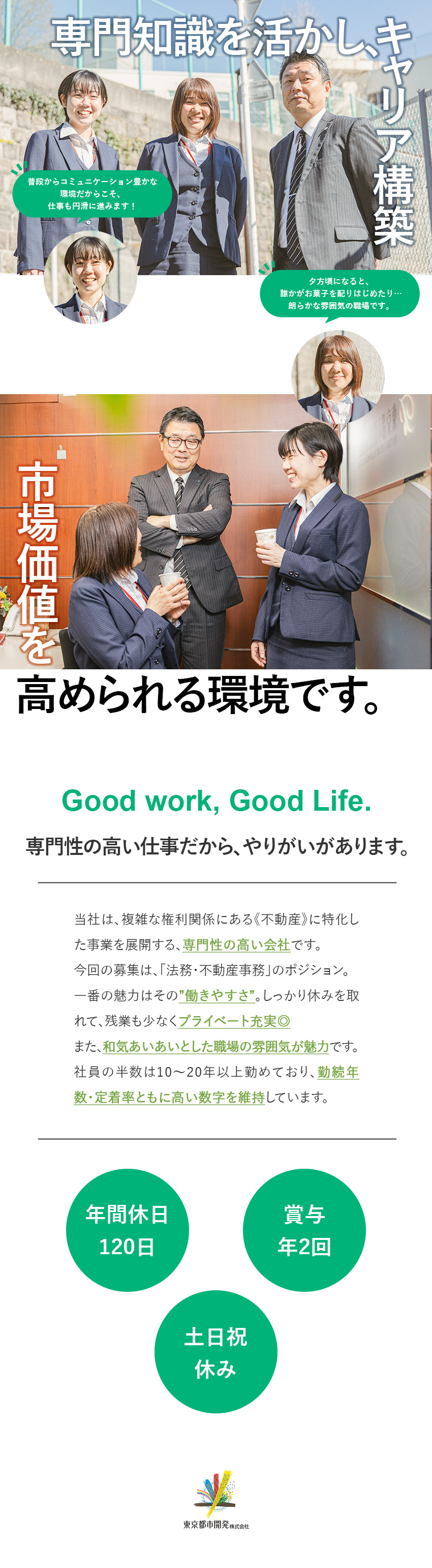 総合職(法務/事務)/年休120日/土日祝休/残業10h以下