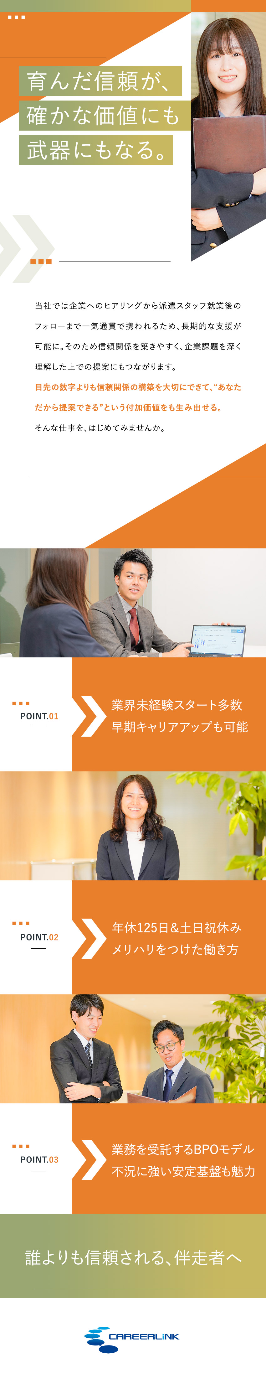 人材派遣営業/土日祝休/年休125日/初年度年収450万円可
