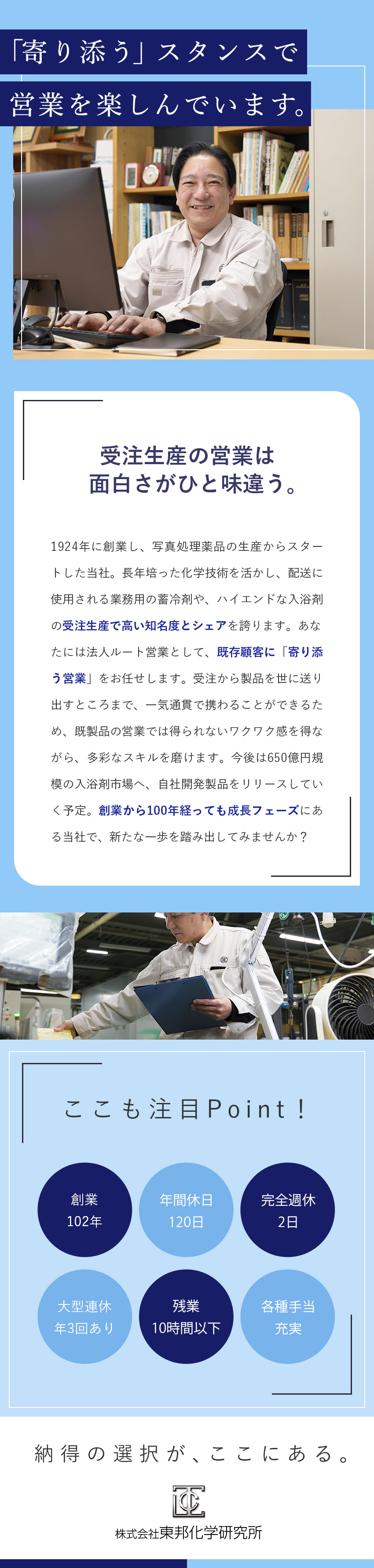 法人ルート営業/年休120日/残業月10h以下/転勤無し
