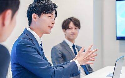 A:裁量が大きく案件によっては直行直帰やリモートもでき、「どう動くか」を自分で考えられる環境です。プロジェクトごとに役割が明確なため、主体的に動きながら成長できます。