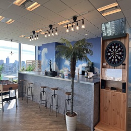 20代の若手が活躍中!社内には、ダーツやバーや、卓球台も!リフレッシュしながらお仕事してます!