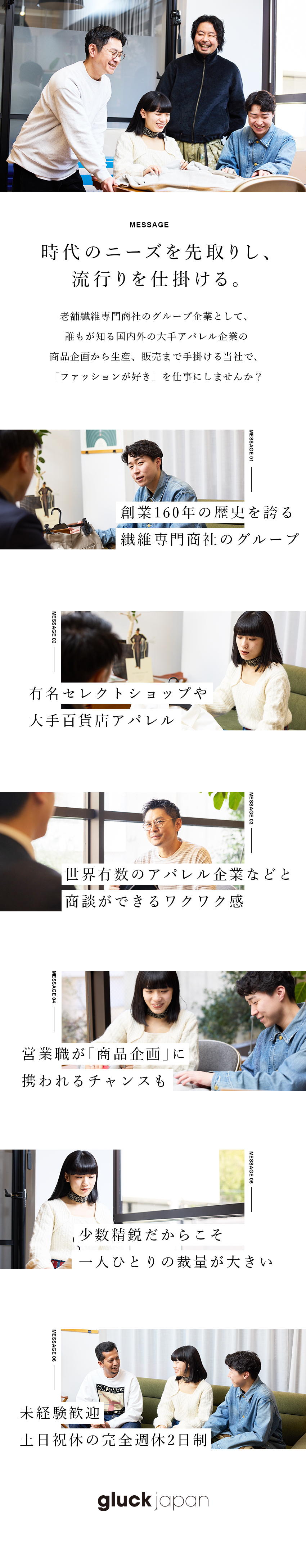 アパレル商社の企画営業/未経験歓迎/海外出張あり/土日祝休