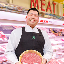 「やる気を見せると、店長や先輩が“次はここを目指そう”って道筋を具体的に示してくれるんです。個店主義だから売場のアイデアも任せてもらえるし、研修で加工スキルも数字の見方も着実にスキルアップができる環境です。技能や成果が手当や登用にきちんと反映されるから、がんばり甲斐があります。近くで応援してくれる人がいる―それが“気づけば続いてる、気づけば成長してる”理由ですね。」