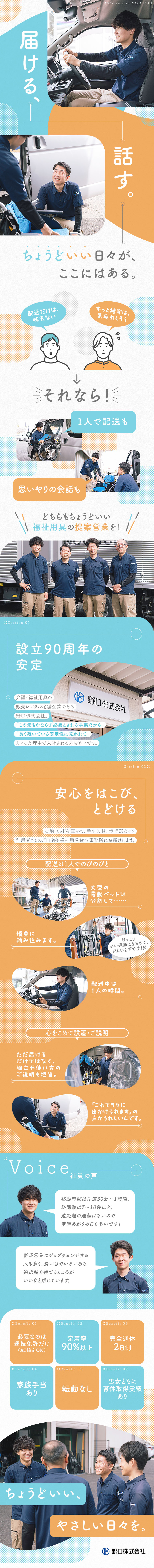 福祉用具の提案営業/配送メイン/新規営業なし/完全週休2日