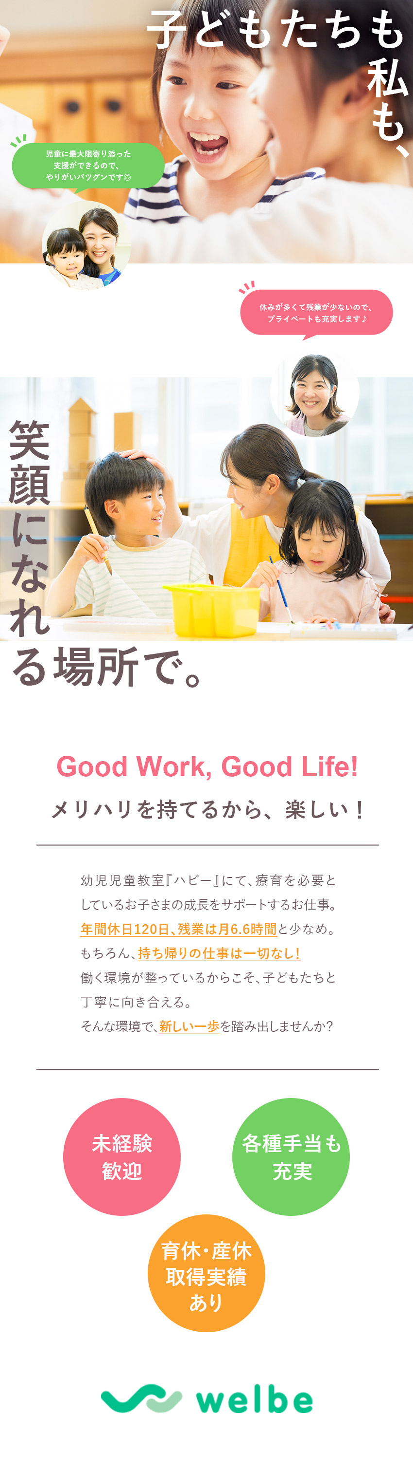 子どもの成長を支える児童指導員/未経験歓迎/年間休日120日