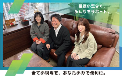 また、多くの関係者を巻き込みながら仕組みを創り出す経験を通じて、調整力やプロジェクト推進力も飛躍的に向上します。単なるサポート業務で終わることなく、テクノロジーを駆使して組織をアップデートする「経営推進」のプロへと成長できる環境。経営の最前線で得られる「新しい目線」を、あなたのこれからの強みにしてください。