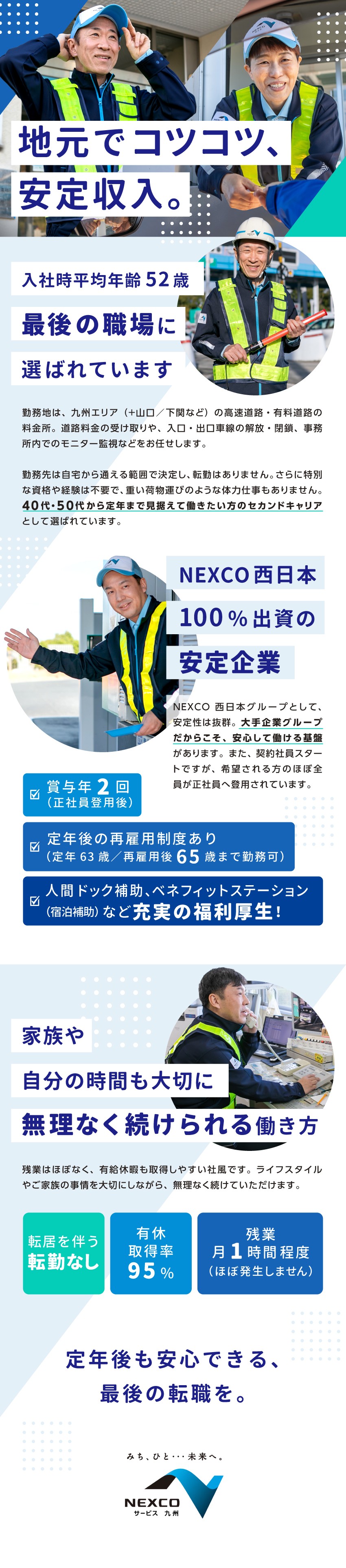高速道路の料金所スタッフ/40代・50代活躍/正社員登用あり
