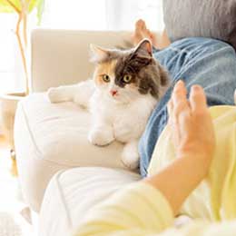 自宅で愛猫に癒されながら働く社員も♪バーチャルオフィスでやり取りできるのでフルリモでも安心です◎