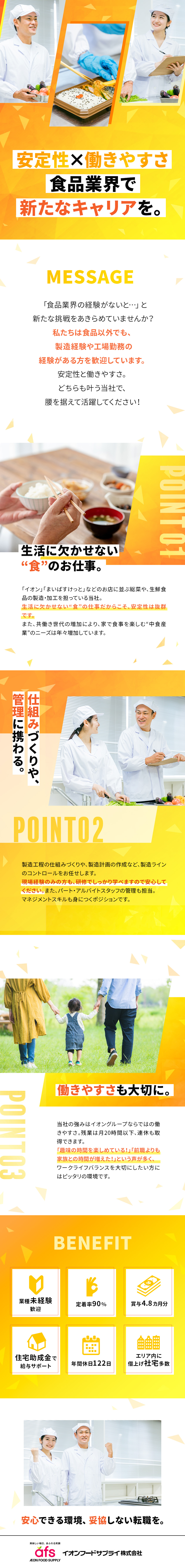 NEWイオンの製造リーダー候補/年休122日/年4回の長期休暇