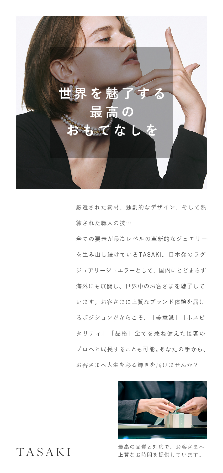 あなたの接客で、TASAKIの魅力を多くの方にお伝えしてください。
