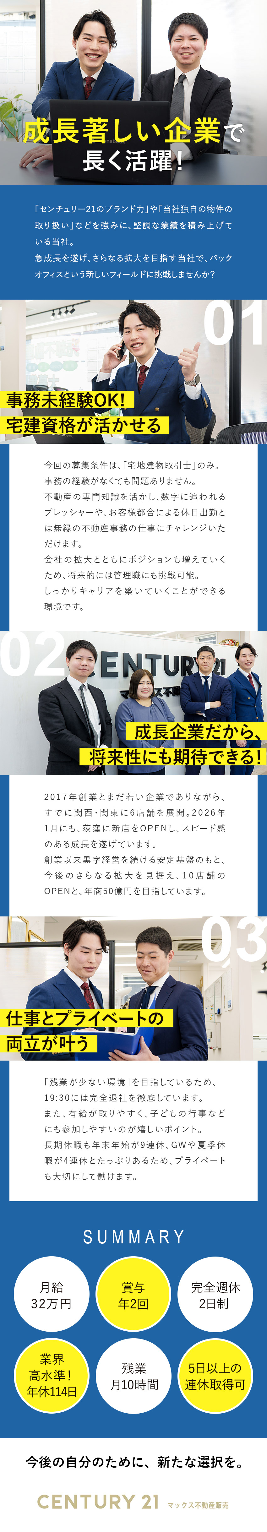 不動産事務/月給32万円以上/残業月10h/賞与年2回
