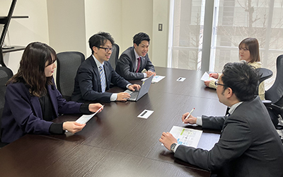 業務の進捗状況はみんなで共有し、チームで業務全体をまわすスタイルを大事にしているため、一人が業務を抱え込んでしまう心配はありません。