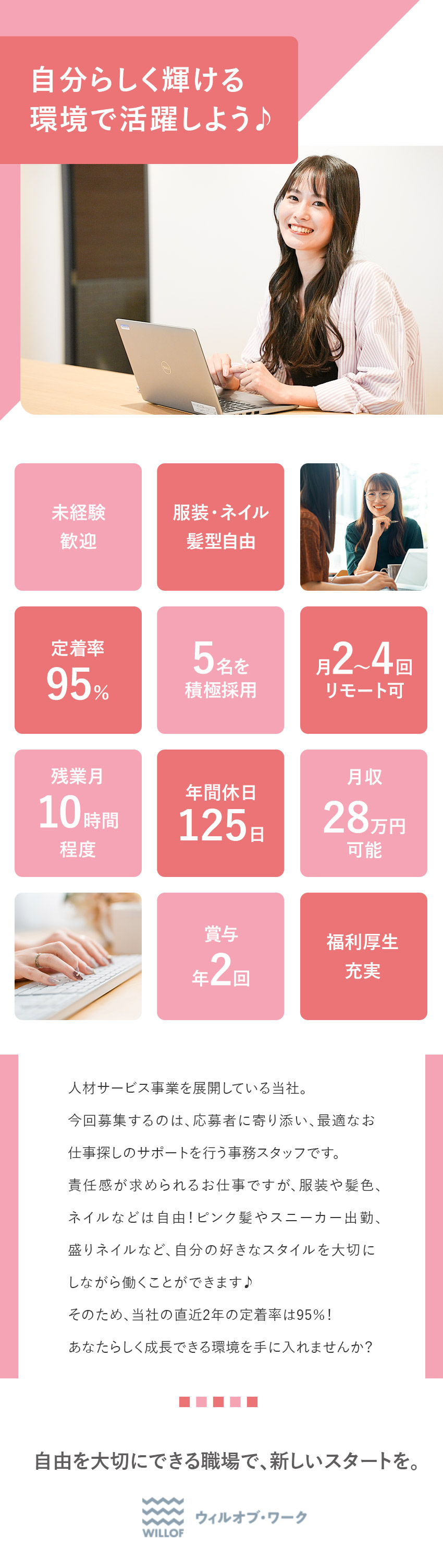 【未経験歓迎】基本的なPC操作さえできればOK!自分らしさを大切にしたい方★第二新卒歓迎★学歴不問