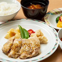 日替わりメニューが楽しめる社員食堂。カフェテリア方式で好きな組み合わせをアレンジ可能です◎