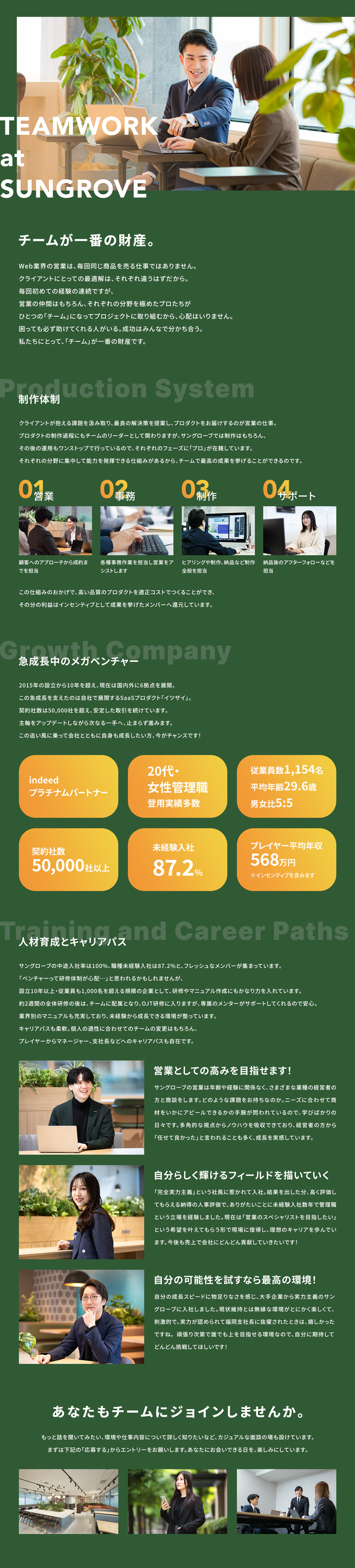 自社商材をはじめとした売りやすい商材が揃っているので、未経験入社でも独り立ちまでが早いのが特徴です。