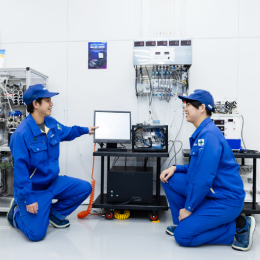 Mさん「既存製品の改良などの量産案件を担当しており、試験や評価まで関われます。最初は分からないこともありましたが、周囲に相談しながら一つずつ乗り越えてきました。やり切ったときの達成感は格別です!」