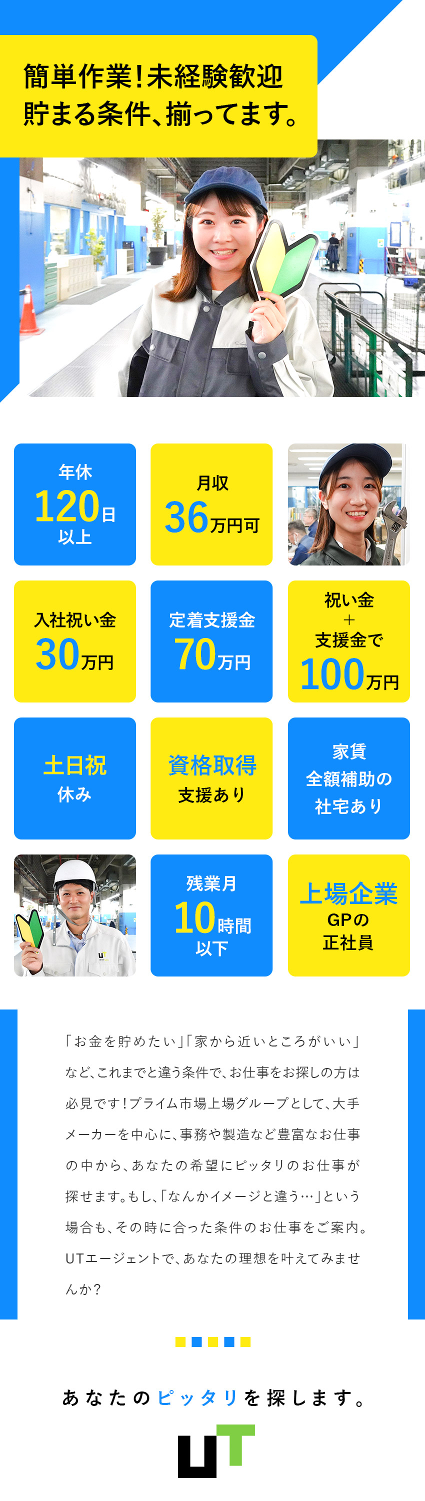 祝金最大100万円/月収36万円や社宅費全額補助も/製造職