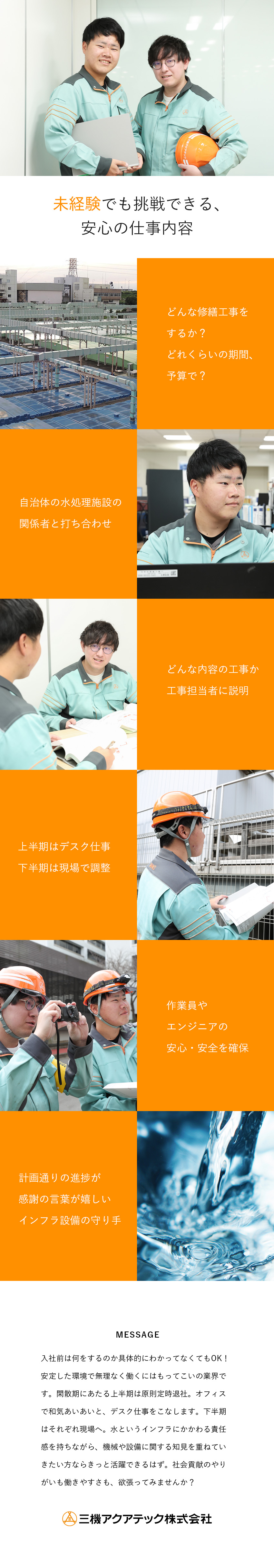 【広島県】水処理プラントの設備点検◇三井G子会社/賞与実績5.0か月/平均残業月9時間/研修制度充実
