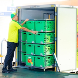 ▼荷積みは台車4つを押入れるだけ!10分ほどで完了