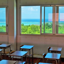 学校からはエメラルドグリーンの美ら海が見えますよ♪