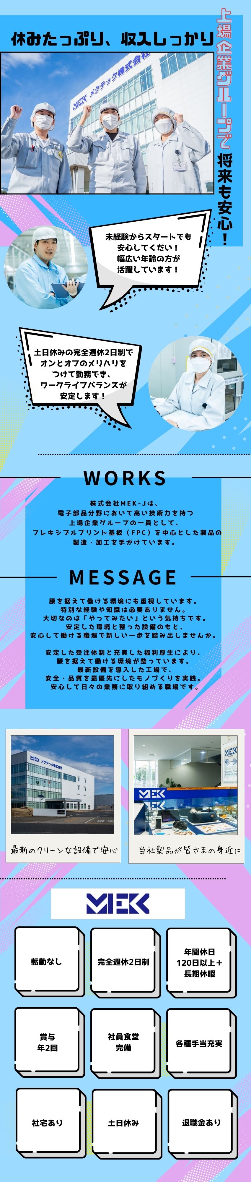 安定した生産体制のもと、長期的に働ける環境が整っています。