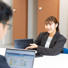 OJTを通じて、営業に必要な知識からコーディネート業務、対人折衝まで、先輩社員が丁寧に指導します。