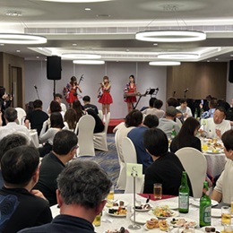 社員旅行パーティーの様子。3年に1回は海外へ旅行しています。