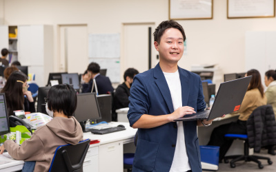 バックオフィスは、コツコツと着実に業務を進める落ち着いたタイプのメンバーが多く、安定感のあるチーム。一方、営業支援・企画部門は、コミュニケーションが活発で快活なメンバーが多く、部署ごとに異なるカラーがあるのも特徴です。