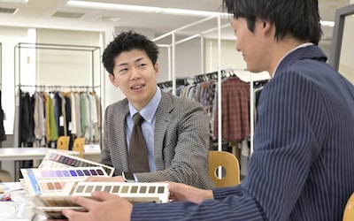 商品の企画から生産・納品、その後の販売まで、ワンストップで携われるのが当社のアパレル営業。最初から最後まで、主体性をもって、自分で動かしていきます。