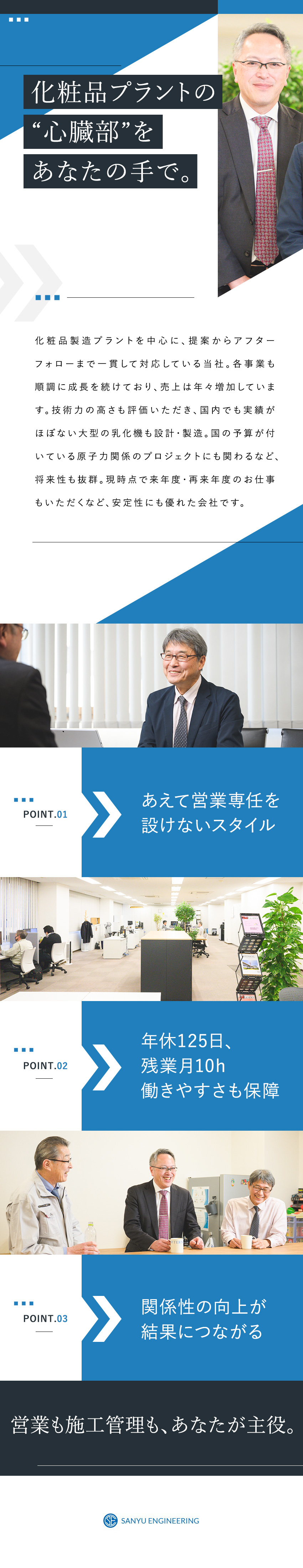 プラントの提案技術営業/年間休日125日/手当充実/転勤なし