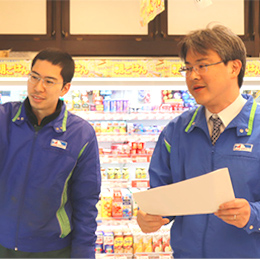 入社後は経験豊富な先輩SVに同行して、加盟店に訪問します。1日に2~3店舗を訪問し、商品案内や売場指導、売上報告などの仕方を学びます。