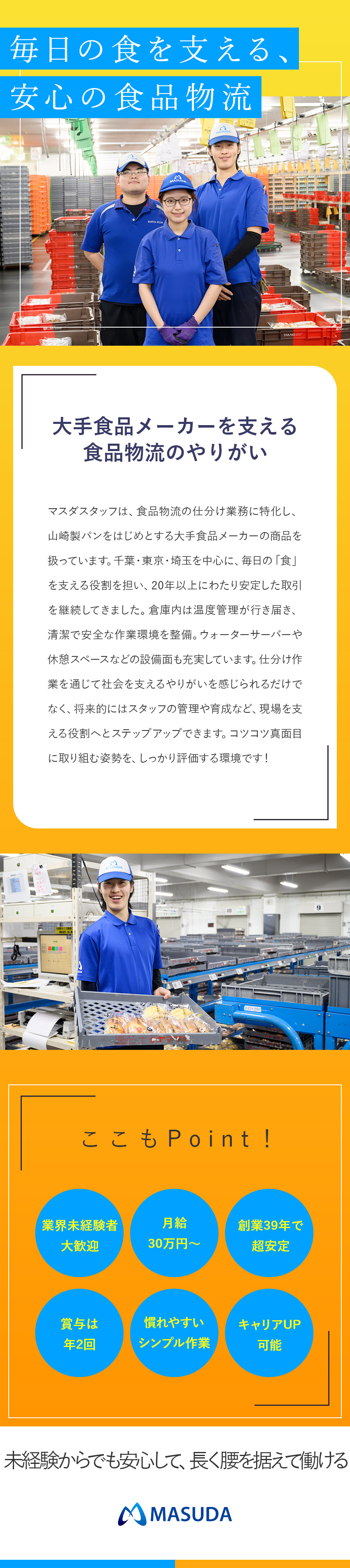 食品物流の仕分け業務/業界未経験歓迎/創業39年目の安定企業