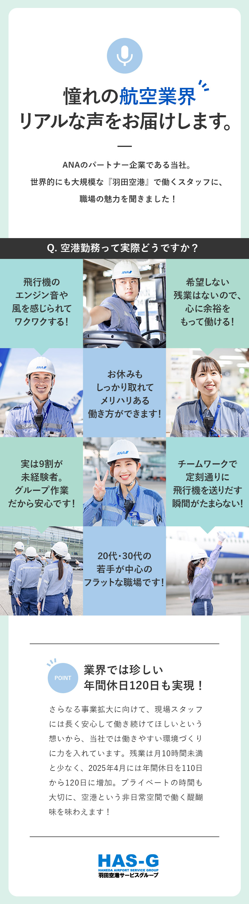 ANA空港サポート業務/社員寮・住宅補助有/年間休日120日