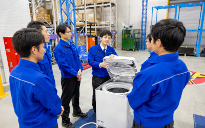 サービスマナーなど、接客の「基礎知識」や、実機の一部を分解し、エラーコードをチェックしながら不具合の原因を探すという「実践形式」の研修もあります。