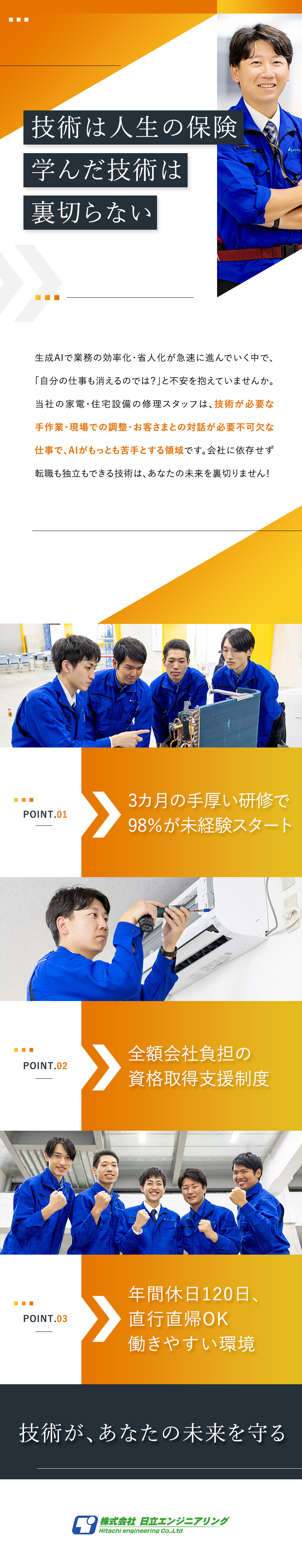 家電・空調の修理スタッフ/未経験歓迎・国家資格の取得支援制度