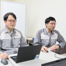 お客さまの要望に応えるために設計部門、製造部門など関連部署とも連携。丁寧にコミュニケーションを取りながら業務に取り組んでいるので、技術面での相談もしやすいオープンな雰囲気です。
