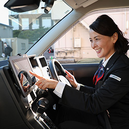 A. 全車両に最新のカーナビを搭載しているので、ご安心ください。デビュー前の同乗研修や、日々先輩社員からのアドバイスで徐々に地理について把握していけます。