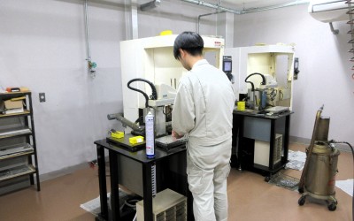 マシニングセンタという機械を操作して、刻印加工を行います。