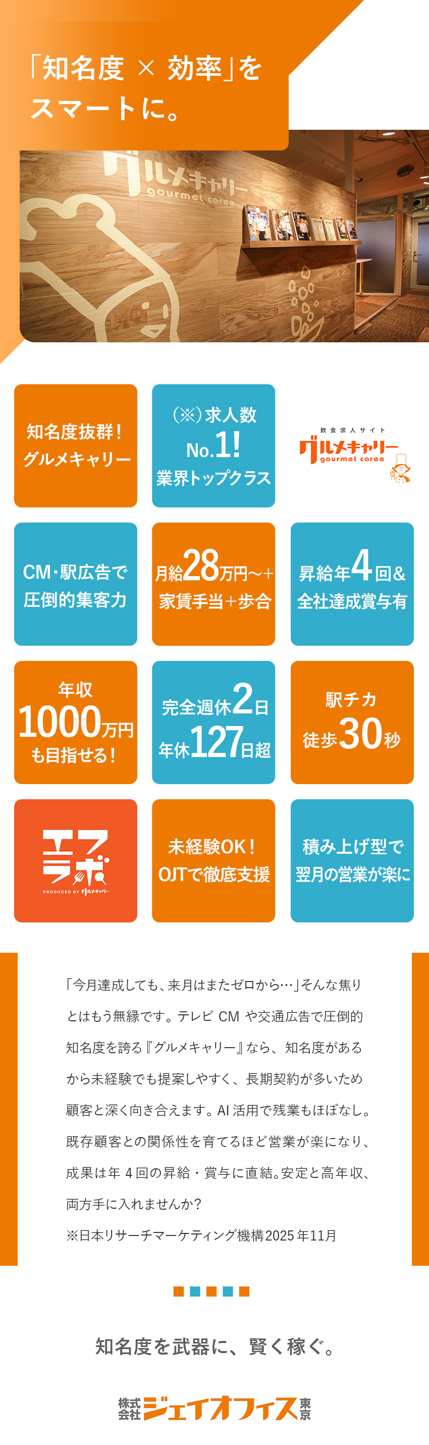 飲食特化の法人営業/未経験歓迎/年休127日/年4回昇給