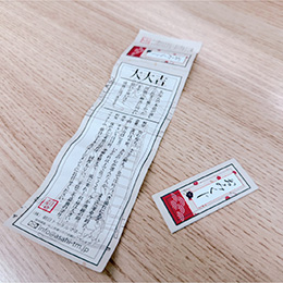 実際に制作したオリジナルのおみくじ。おみくじが話題となり、覚えてもらえるきっかけに!