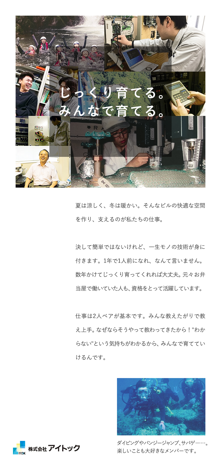 資格取得率90%以上!ビル空調システムの保守・施工/土日祝休