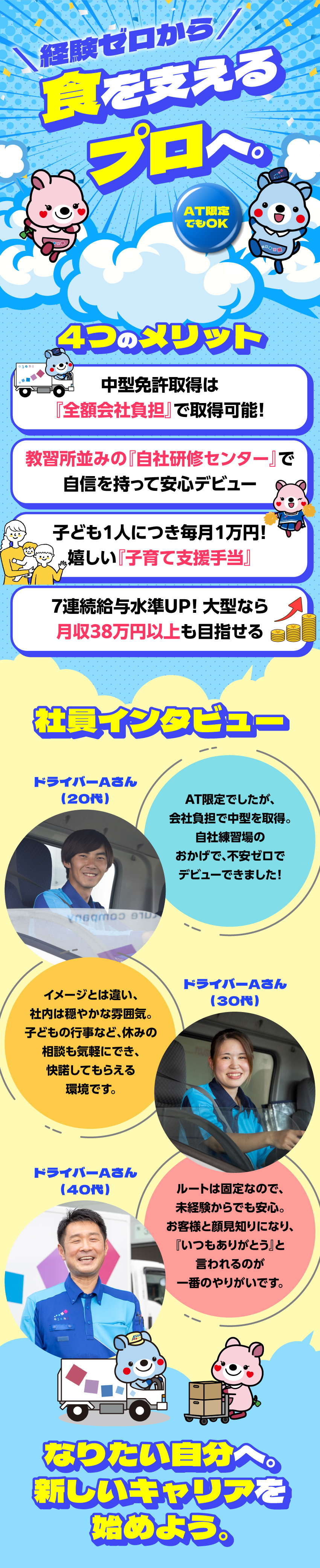 店舗配送ドライバー/未経験可/AT普免OK/年間休日117日