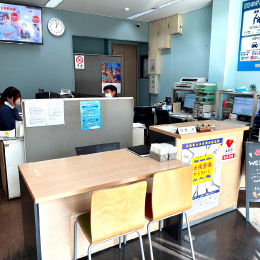 車検や修理、保険の見直しなどの相談を落ち着いて伺える、明るく整った接客スペースです。