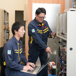 同社はこれまでに蓄積された知識を活かし、旧型の保守から最新式の高速エレベーターにも対応する技術力を持っています。小型化、高度化され続ける最先端技術をスタッフすべてが共有するために、入社後のOJTで、徹底した安全管理の意識を実技と共に学びます。