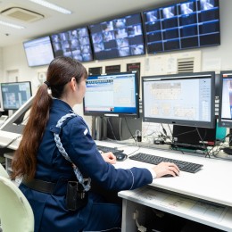 「当社の警備は巡回だけでなく、空調の効いた屋内でモニターの監視業務や事務作業などの座り作業もあります!立ちっぱなしの業務ではないため意外と体の負担が少なく、年齢や性別問わず活躍できます」