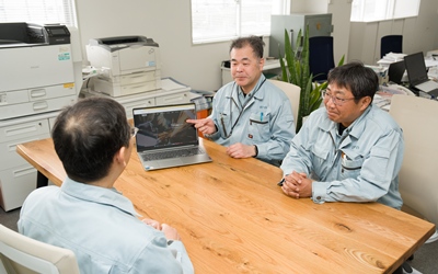 まずは先輩との同行営業からスタート。仕事の流れや提案のポイントを基礎から学びます。並行して、自社工場にて工具の使い方やメンテナンス方法を学ぶ、実技研修も実施。提案力と技術力の両方を、段階的に身につけていきます。