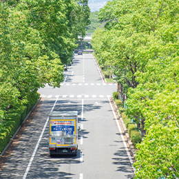 1週間程度の運転研修を終えた後はさっそく先輩社員の配送に同行!業務の流れや配送をおこなう上でのコツ、お客様との接し方などを約1~1.5ヵ月かけて学んでいきます。