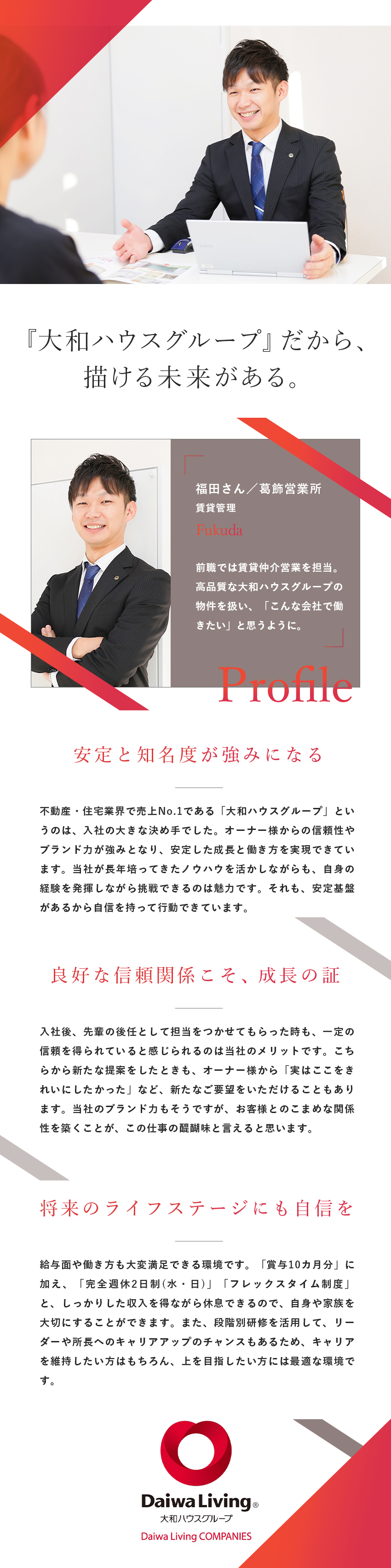 【栃木】プロパティマネジメント(賃貸)※賞与10か月/フレックス・残業22H/業界1位の大和ハウスG